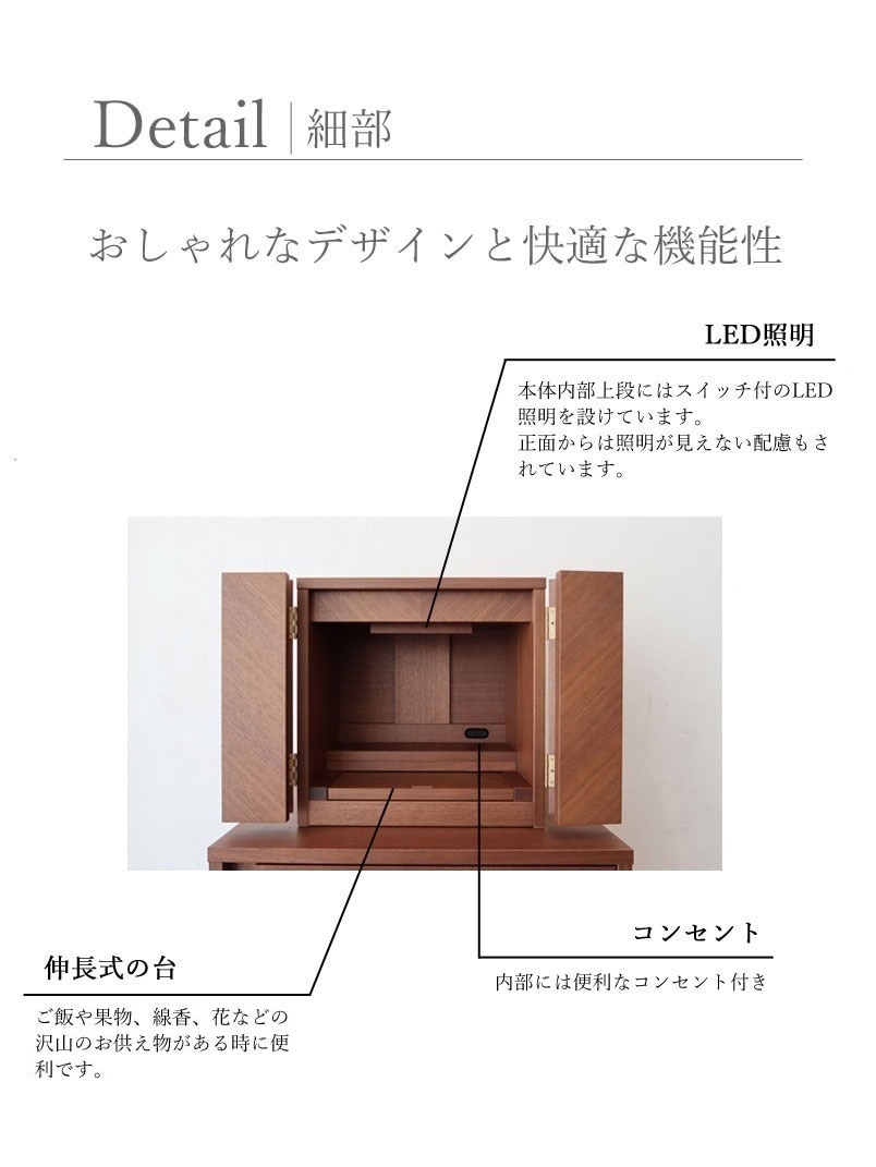 【日本製・高級ウォールナット】LED付きモダンミニ仏壇|上置き・小型仏壇・おしゃれなインテリア仏壇(各宗派対応)