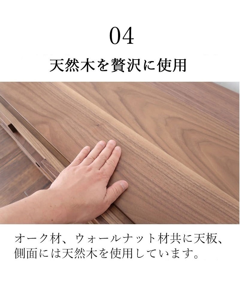 | 材質 | 天板/側板 ウォールナット/オーク突板 前板 ウォールナット/オーク無垢材 内装 プリント化粧板 |