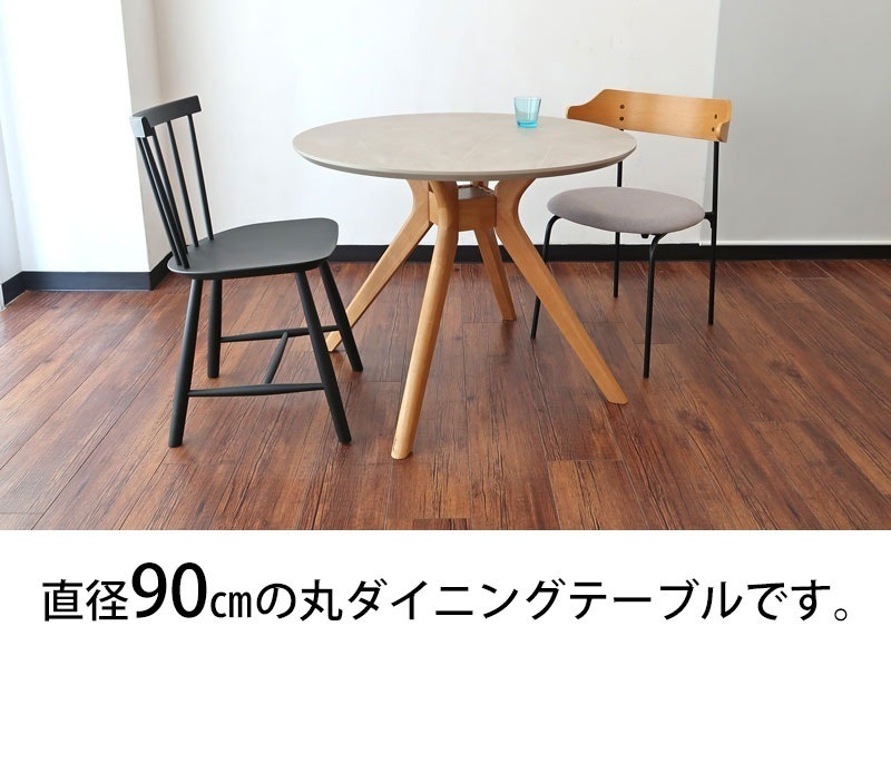 大理石調 丸ダイニングテーブル 90cm 円形 木製 ラバーウッド脚 北欧 モダン ナチュラル